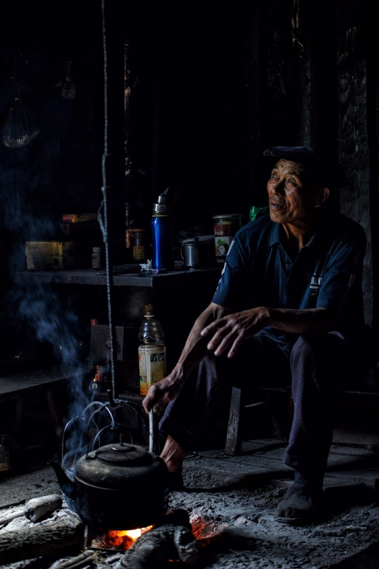 重庆城口县最北端的方斗坪村,一位留守老人在自家的“排垒房”里,看着窗户外面发呆。