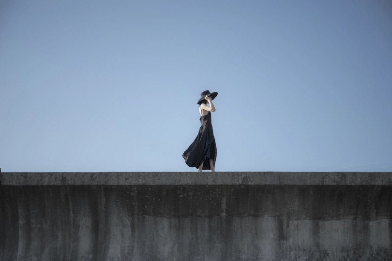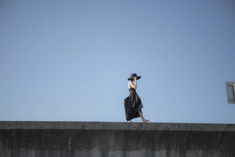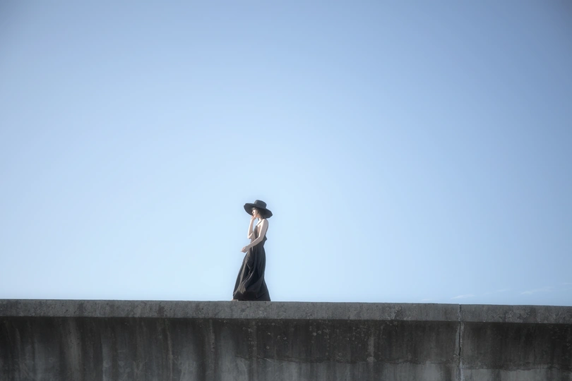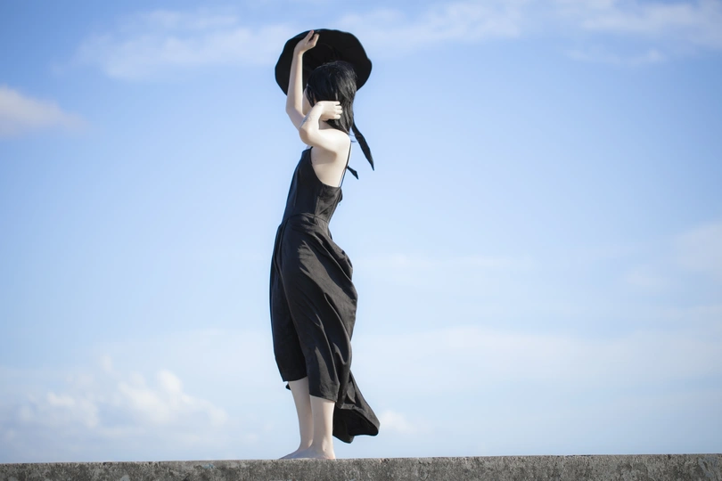滴水湖的堤坝上晴空万里,犹如置身天空之中