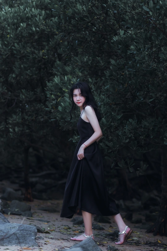 夕阳的脚步太快,光线太暗只拍了几张,小姐姐穿黑色长裙太美了,西湾红树林这样拍暗调人像也很美,沿海岸边有一片树林,退潮后树根和岩石就露出来了,周末去散步玩的人特别多,草坪基本坐满了,所以岸边树林是个不错的选择,就是有点暗,拍照的时候可以寻找树木稀疏的地方,我由于时间和光线的原因,就没有进去了。天暗的特别快,建议可以早点去,下午3、4点的样子开始拍,就不会感叹时间太匆忙的手忙脚乱,拍照的同时观海台黄昏美景也不容错过哦。