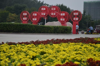 近日,在河南民权县东区广场看到,鲜花装扮一新,美不胜美。