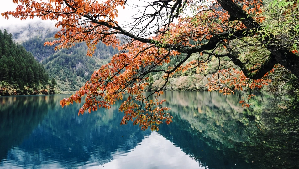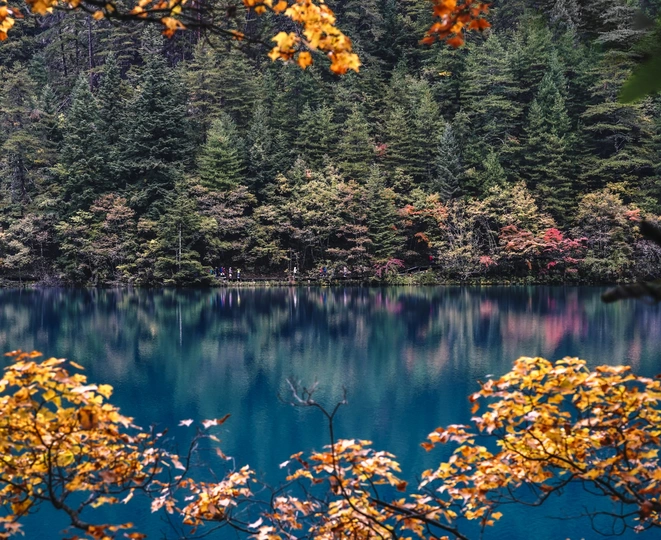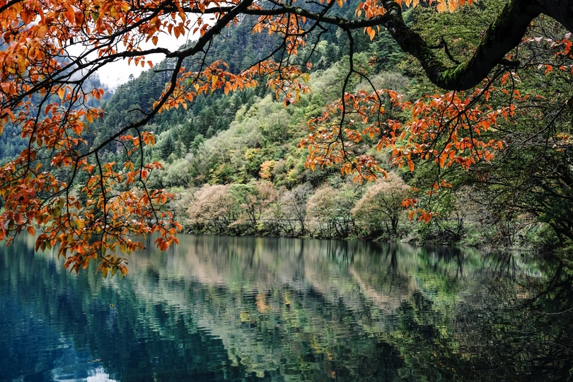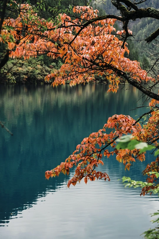 金秋九寨,那一片红,这一片黄,在青山绿水中分外妖娆。