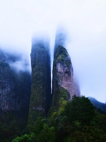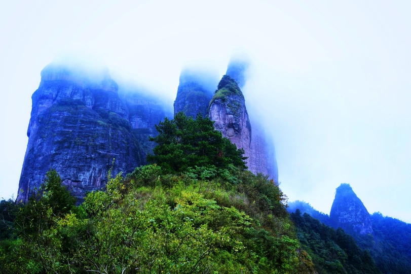 雾笼江郎山