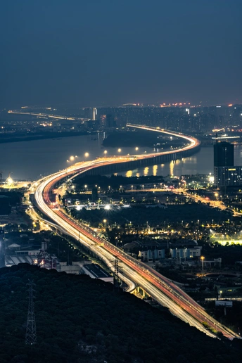 夜幕降临的广深沿江,犹如一条火龙,从特区深圳飞向远方