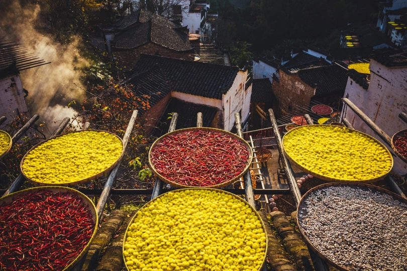 深秋的婺源,徽州的神韵依旧,但原来的水墨丹青变成了色彩斑斓
