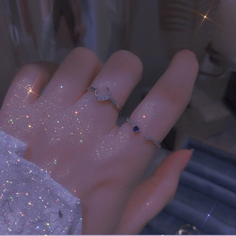 喜欢看星空🌃 一枚月亮拥抱着一颗蓝色的宝石 月亮了镶嵌了一串锆石,闪闪发光 戴在指间,惹眼又时尚 满足了每一个时刻的少女心 一枚戒指,三种戴法 花一份票票,得两个戒指💍 超值了。 换着戴,很美。