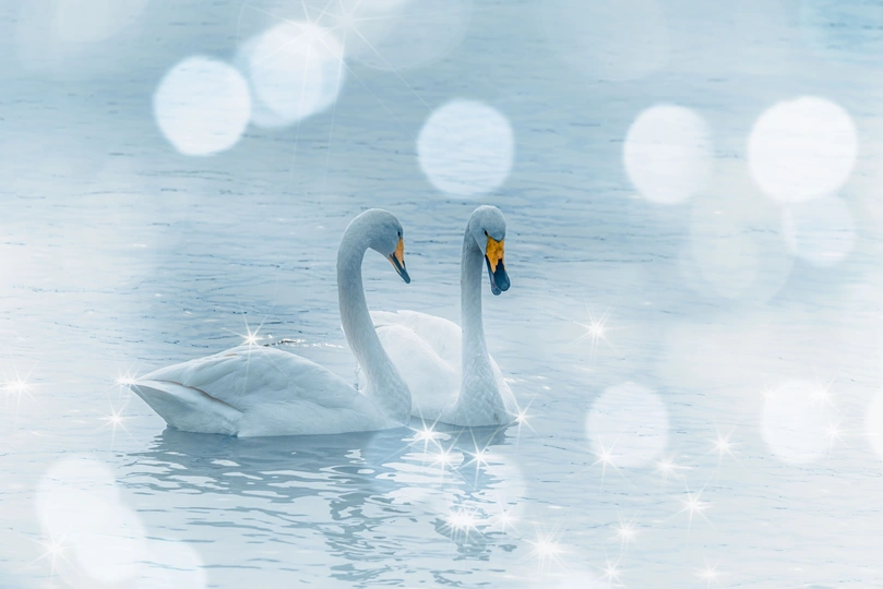 晨光里的一对情侣,在用目光传递爱意。 山东荣城烟墩角,是天鹅冬季栖息的宝地,人与天鹅和睦相处,是观看和拍摄天鹅的好地方。