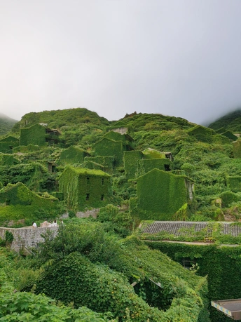浙江嵊泗枸杞岛嵊山镇后头湾村,鼎盛时期人口超过3000人,曾是嵊山最富裕的渔村。因交通不便,上世纪90年代村民陆续搬迁,至2002年人去楼空,爬山虎占据楼房。 2015年网友"青简"拍摄后头湾绿野仙踪照片,该村成为旅游景点。2016年1月英国《每日邮报》称其为全球28处被遗弃的绝美景点之一。