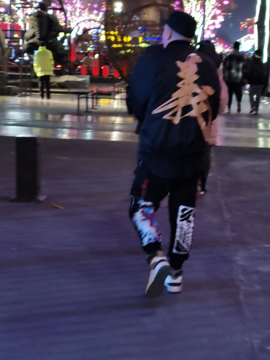 义,穿着个性服装行走的男人
