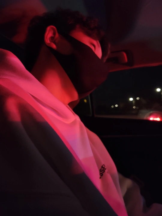 他来找我玩,晚上七点左右,去吃饭的路上,侧身看他,发现灯光好美,于是用手机记录下了那一刻