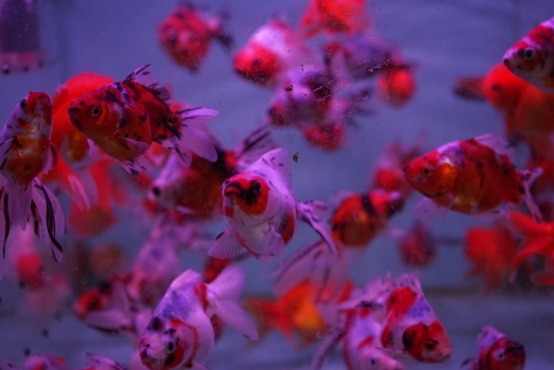 路过一家鱼馆,自己不会养鱼,但喜欢看别人养的鱼,特别爱拍