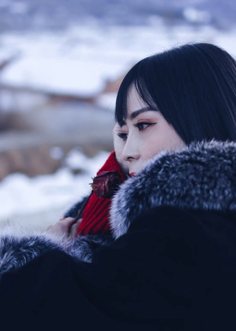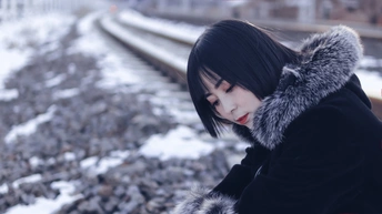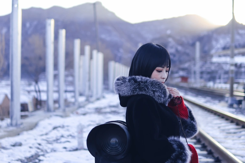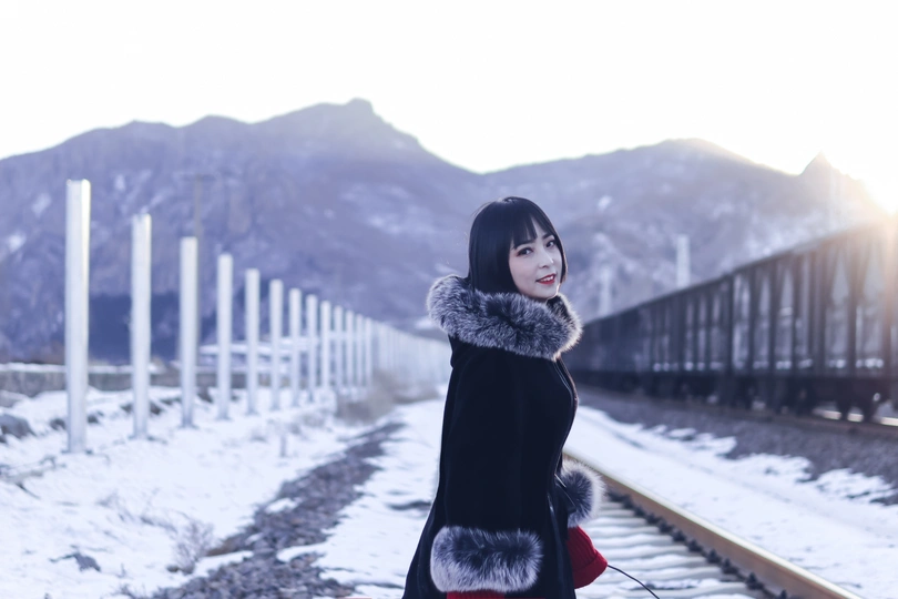 雪后,应邀,与小姐姐拍于火车站周边