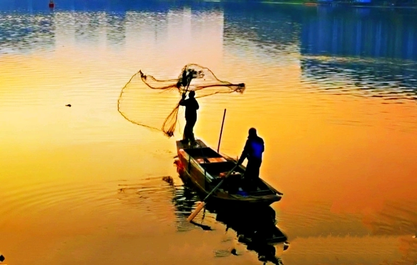 我撒一张渔网,再摇一双木浆