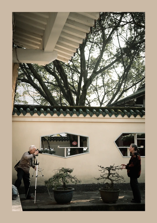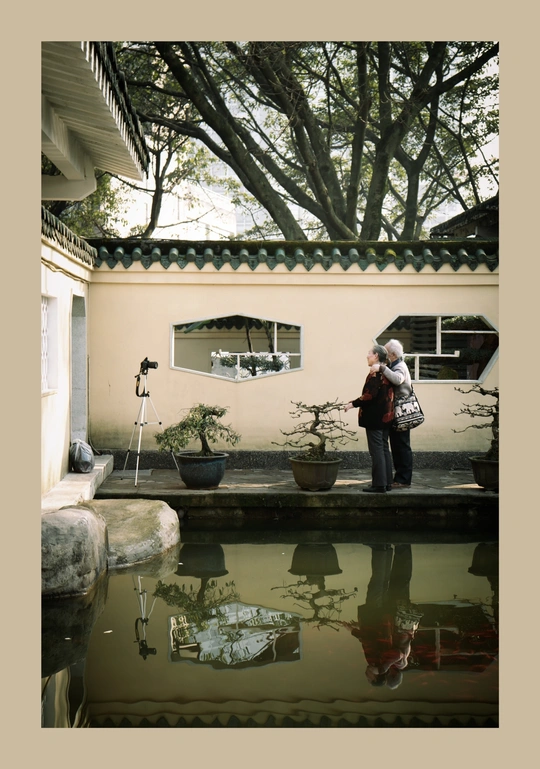 从进门开始,就看到这对老人家。奶奶超级开心啊,脸上的阳光都洋溢着幸福,爷爷超有耐心的调整。一路走来,公园里每处角落都刻下了属于他们自己的回忆。这大概就是为什么喜欢摄影的原因吧。