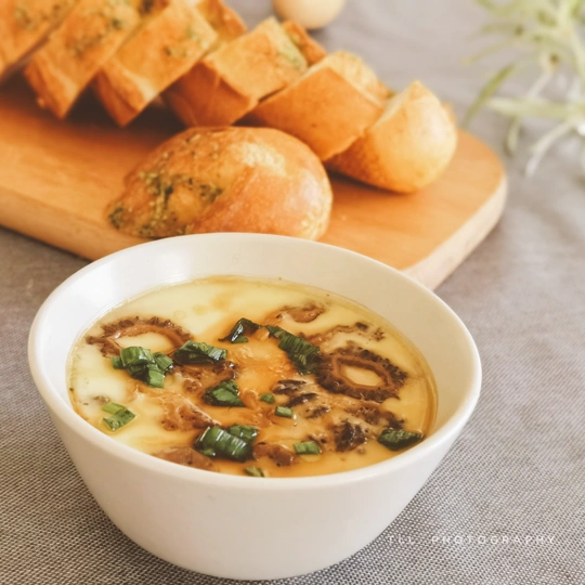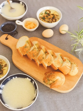 在有穿过窗帘落地的阳光的清晨;在有慵懒安静的周末;起床为你做一顿早餐;想在你醒来时给你带去一个小小的温暖…… 已经记不清多久没在一起吃早餐了。终于在女儿生日,我的苦日的今天,我们坐在一起吃了个早餐! 记录一下惬意的早餐时光(蒜香法棍、白煮鸡蛋、羊肚菌蒸蛋、小米粥)[心][心][心]