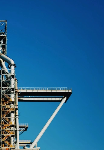 一个正在建设的3800立方米高炉,一个伸出的皮带支架,仿佛像一个高空跳水台一样