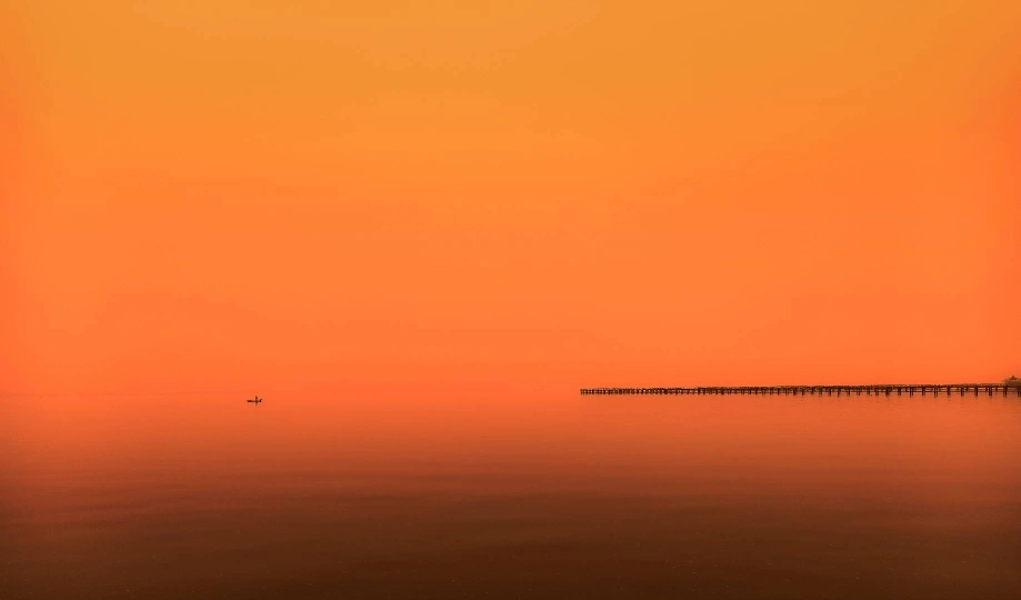 一天傍晚,我经过一片寂静的湖面,看见一艘小船刚刚驶离岸边向着远处划去。给人一种无限遐想的感觉