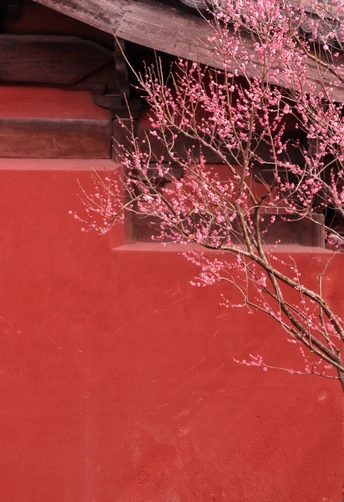 摄于上海松江广富林。正月乍暖,红梅绽放,倚着寺庙的红墙,分外醒目。