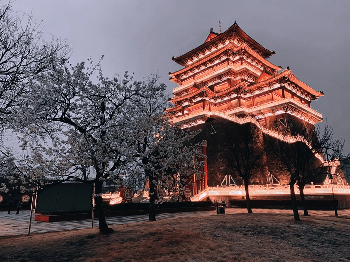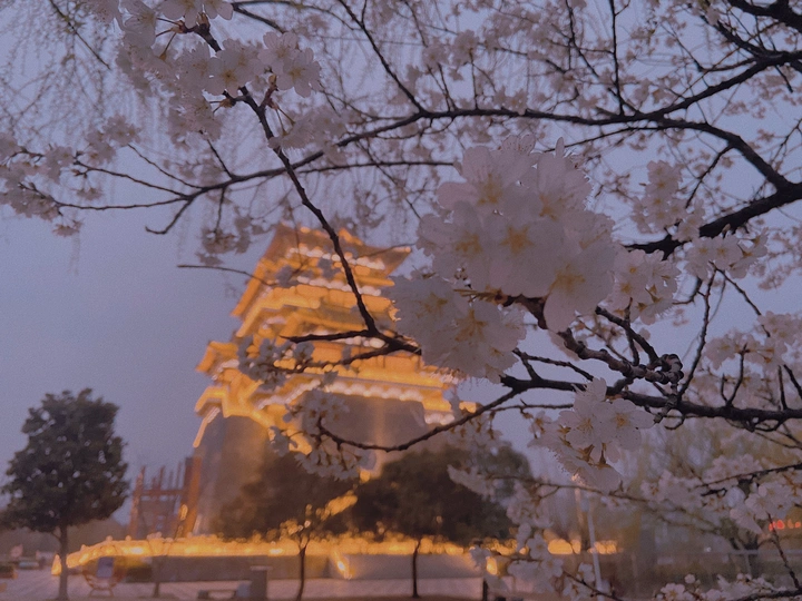 已是初春 在一次温度突然拉升至27度之后 又跌落至零下 一夜漫天雪花 这是周中的事了 到了周末 雪化得是差不多了 偶然发现湖边的花儿开了 入夜后的宝津楼雄壮之余也多了些柔情