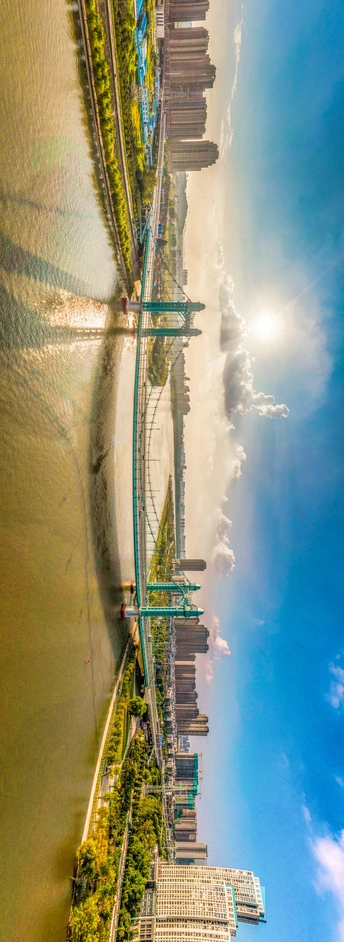 古田桥(江汉六桥) 蒂芙尼蓝色的大桥 是武汉网红打卡地之一 本次为无人机逆光拍摄,后期拼接调色。