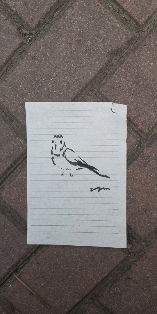记得那天下午在公园写生,旁边商店老板的女儿提着鸟笼走来看我画画,给了我一片饼干,作为交换我从包里抽出一张纸画了她的鹦鹉,鹦鹉名叫Jenny。 可能是出于好奇,第二天,我假装去那家商店买水,当我问及Jenny…Jenny死了。