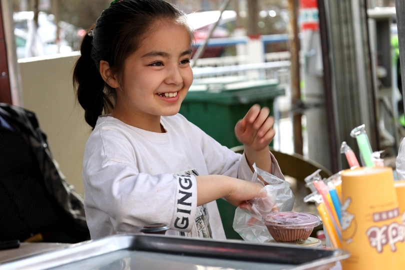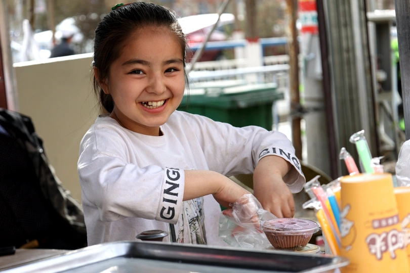 新疆巴扎上的维吾尔族姑娘,冰淇淋一样的女孩,甜甜的笑容,腼腆温暖。