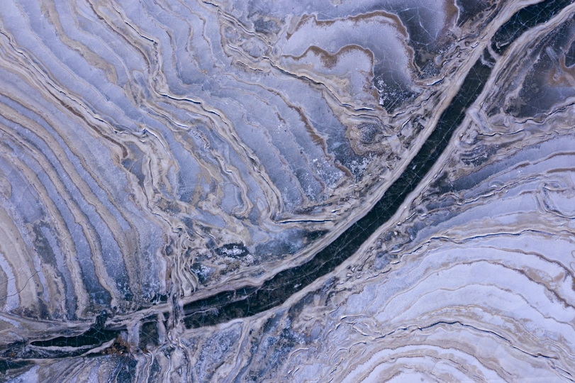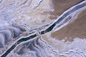 在白河堡水库航拍的冰河裂纹
