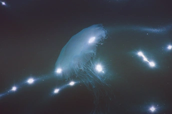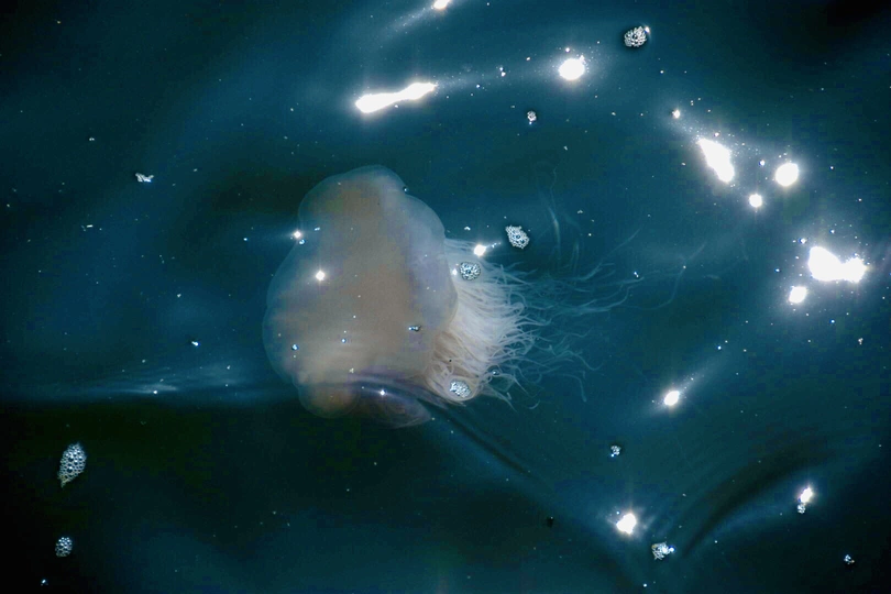 天气热了,水母都游到岸边了。 在波光粼粼下按下快门,水母与阳光的完美结合,恍恍惚惚,如梦似幻办法,仿佛来自黑暗深空中的未知生物。