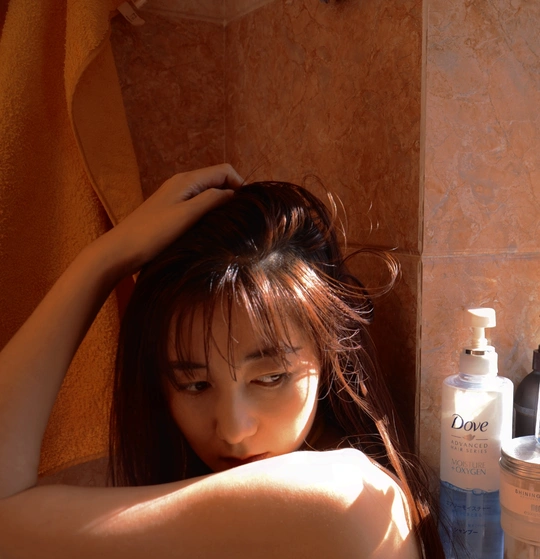 最近沈阳的天气一直都是阴天,不能出外景,那就居家拍照吧!今天教大家在家人人都能拍的“浴室写真” 1.用水打湿头发,做一个湿发造型,穿一个吊带 2.一个纯色浴巾挂在墙上做背景 3.三脚架固定好相机,调好参数,调到遥控模式 4.摆好pose,摁下红外遥控器 5.后期用醒图修就够了,今天没有化底妆,就稍微给皮肤磨皮一下,就可以了,其他不用调,橙色的浴巾反射的橙色光,特别有感觉,原图就是这个效果 6.趁着有一丝微光透进来,赶紧拍两张有光影的 —————————————— 情绪片get√ ↓↓↓↓↓ 自拍教学‖情绪片‖电影感‖港风‖光影‖在家拍大片‖故事感‖沈阳约拍‖居家写真‖浴室写真‖人像摄影‖浴室少女‖美式滤镜‖眼神‖
