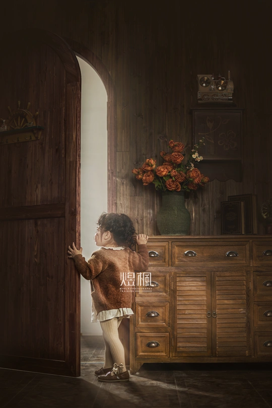 温馨的房间透出光亮,孩子打开门的瞬间情绪自然生动。