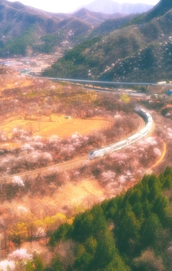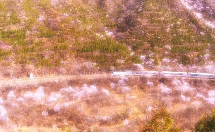 3月,春天,北京居庸关,开往春天的列车缓缓驶向远方。