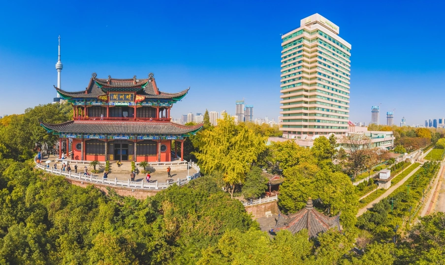 晴川电视塔+晴川阁+晴川饭店以及露一角的晴川桥。