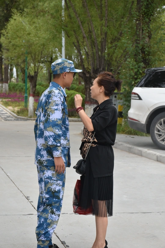 母亲目送孩子步入军营,希望儿子得到锻炼和磨练,有朝一日能自立自强。
