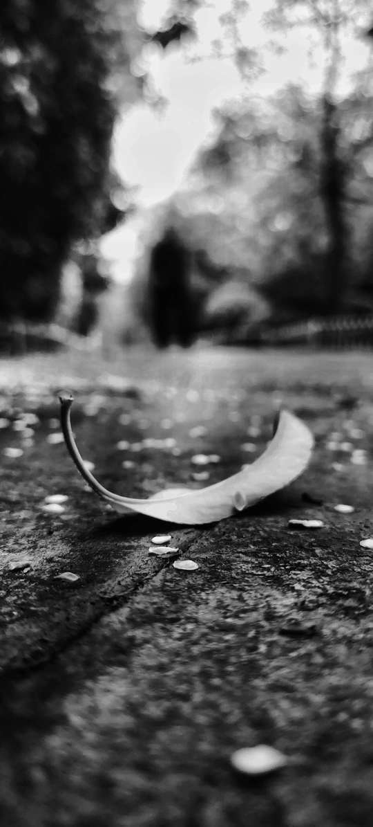 后期的尝试,看一下不同的色调灰度有什么不同的感觉。 风停雨住,地上一片落叶,前方一位路人。是有此名。