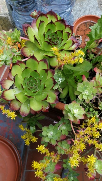 獨住的姨媽, 家里有一個小庭院, 一盤盤的植物陪伴著她的每一個早晨