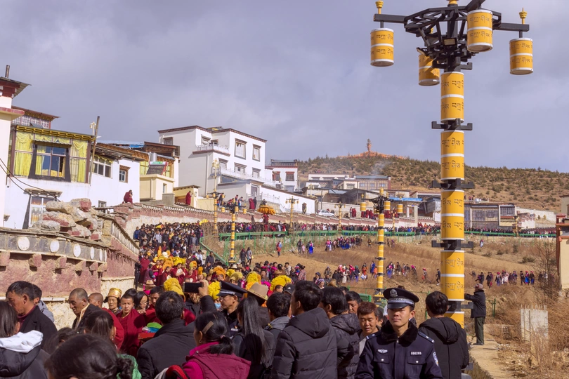 松赞林寺正月十五晒佛节日