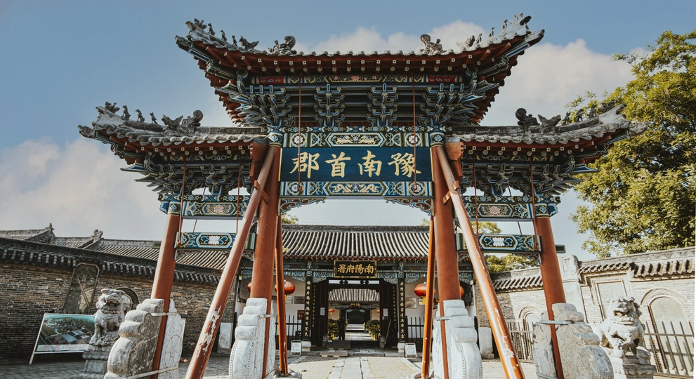 南阳府衙,坐落于中国历史文化名城,河南省南阳市区民主街西部北侧。始建于南宋咸淳七年(公元1271年),历经元、明、清、中华民国、中华人民共和国五个历史时期,共历199任知府。府衙现存明清建筑100余间,南北长300米,东西宽240米,面积72000平方米,整个建筑群布局严谨,规模宏大,气势雄伟,是封建社会留下的一个完整的郡级实物标本。