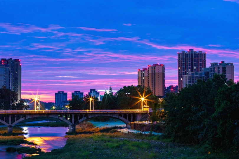 蒲江河上霓虹挂蒲天