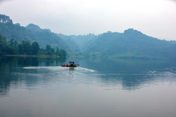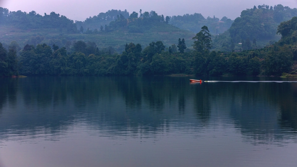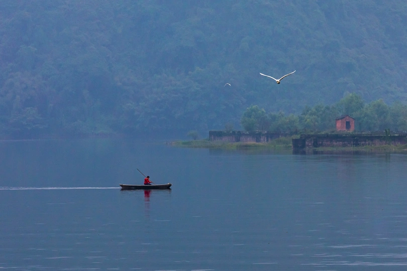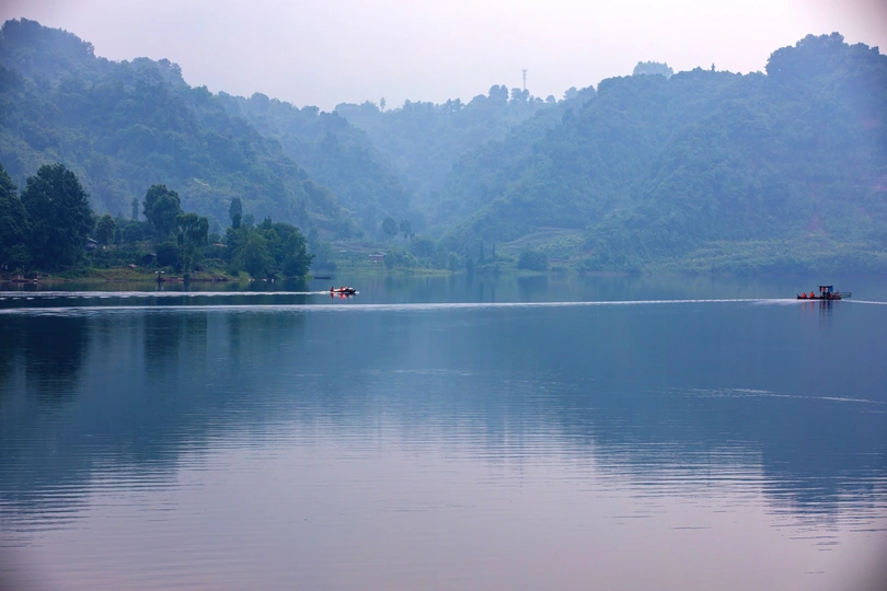 天然氧吧,五湖一阁的长滩湖,薄雾如轻纱照面,美轮美奂!