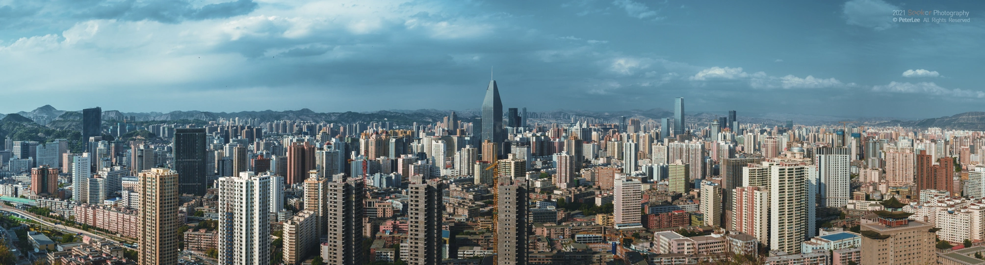 这是9张照片合成的兰州市城关区全景图,左起解放门至右边东岗