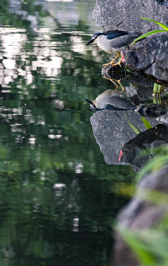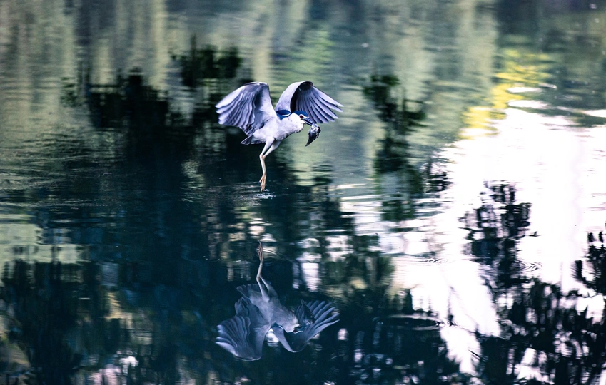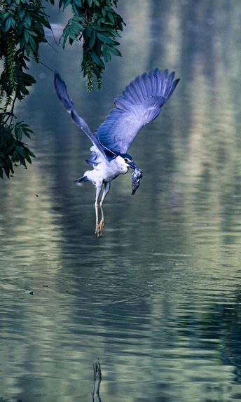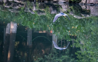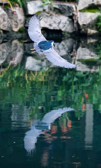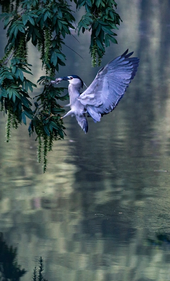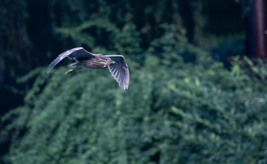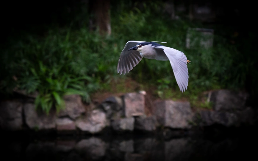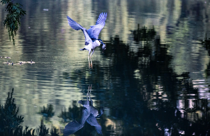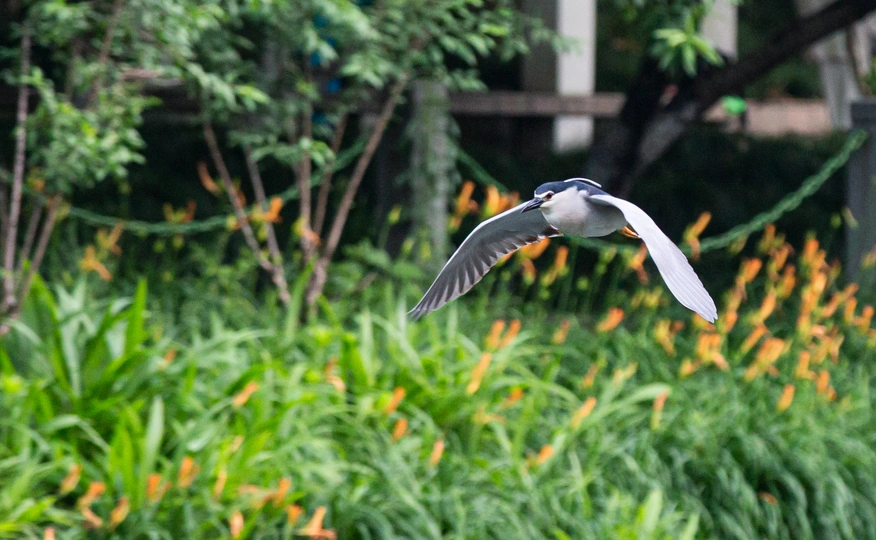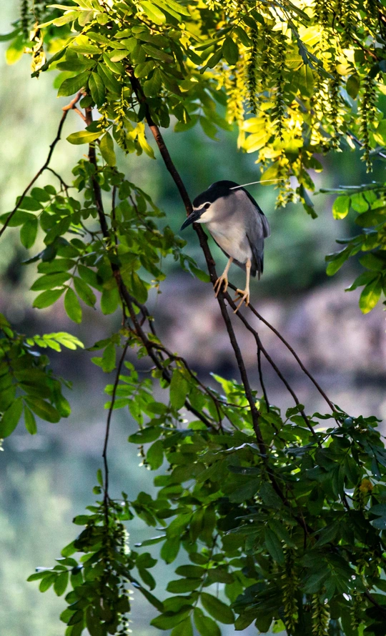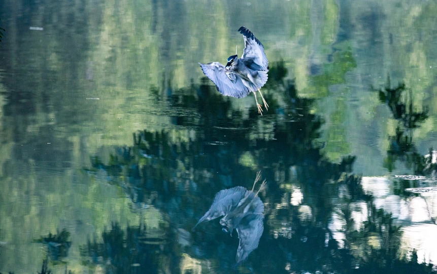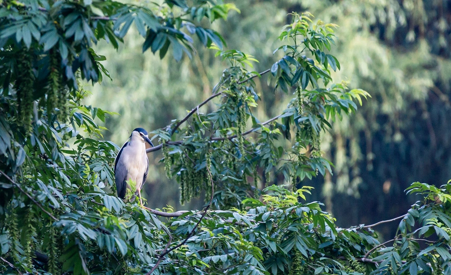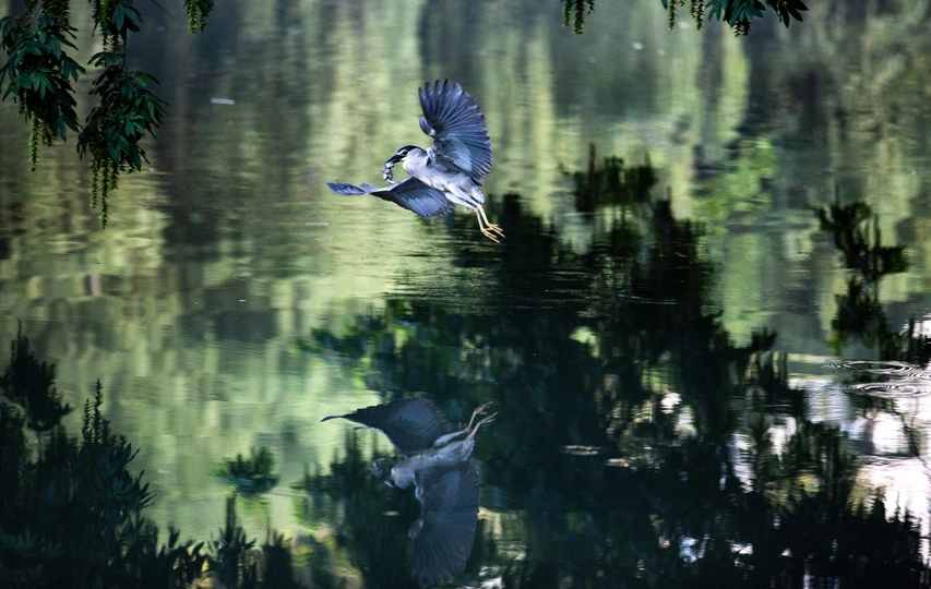 杭州东河经过多年治理,生态环境越来越好,多只夜鹭已经是这里的常住户口。