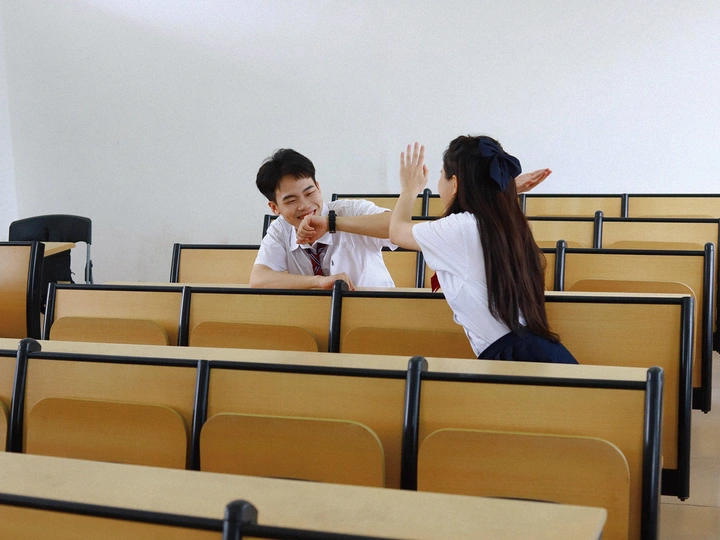 爱情最好的样子莫过于,你在闹,他在笑 男生,女生同一个班4年,男生第一眼就喜欢上了女生,女生经常逃课。后来女生想认真复习考试,两人在图书馆相遇,相识,相恋!祝福! 摄影:@果粒橙-Chengl 拍摄地点:华南师范大学石牌校区