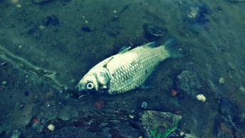 水,青得看不见底,旁边浮起绿色的化学液体,还有刚死不久的小鱼。
