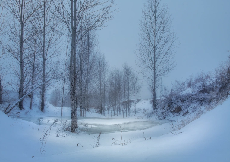 冬天上山的时候就为了这个小水洼走了好几公里,说起来其实这连个小湖面都算不上,但是这是一个小泉子,它看起来太小了,但是流下山的水供给了几代人,特此找到它,纪念一下,冬天冰封的泉
