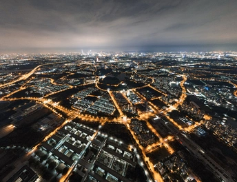 夜色中的广州大学城与 灯火通明的街道和宿舍
