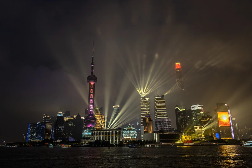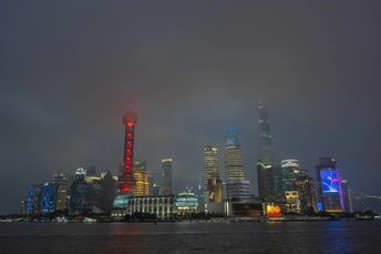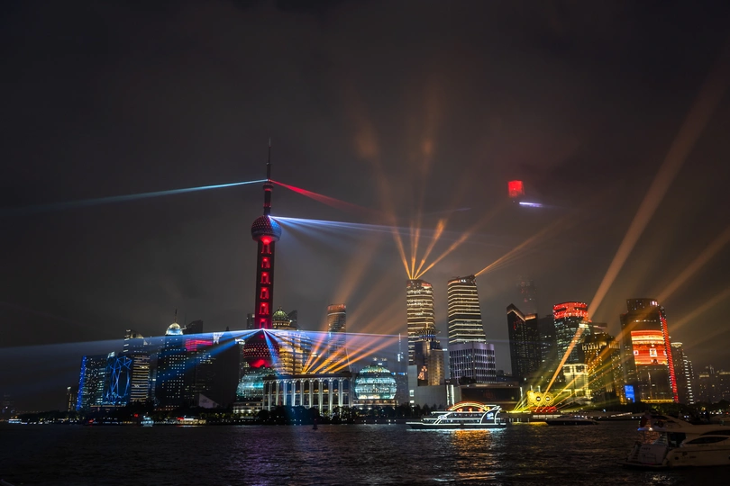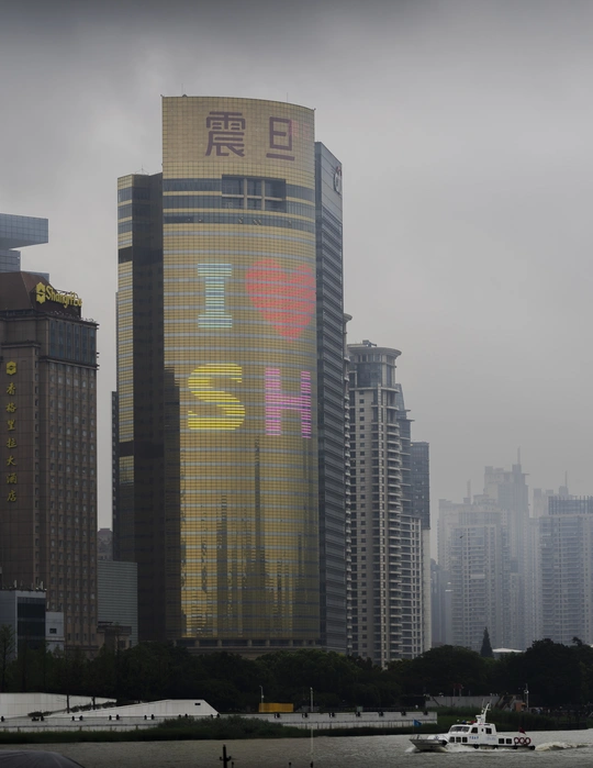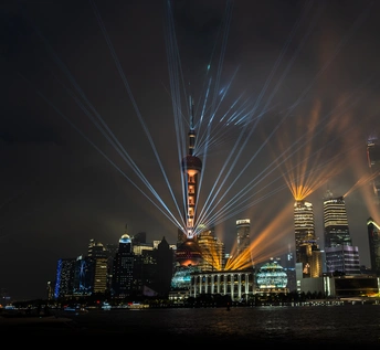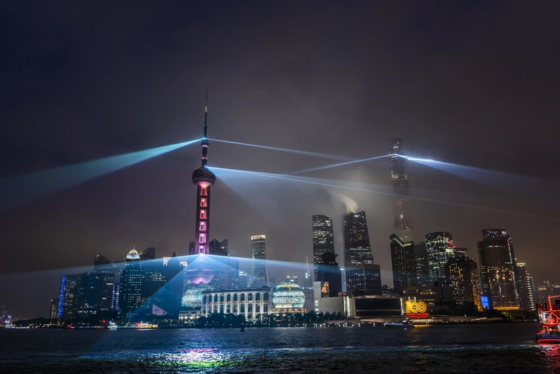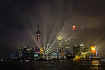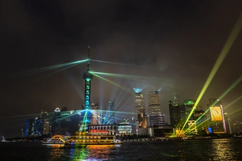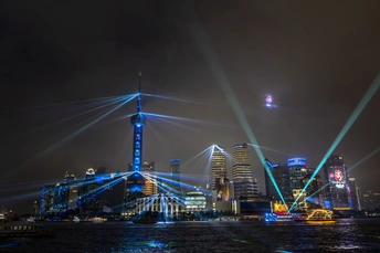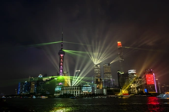 苦等6小时为了短暂的6分钟激光演出 唯一美中不足的是上海正处于梅雨季节,天气条件极差