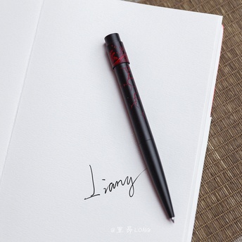 无意间看到笔下新推出的国潮签字笔,可以旋转的创意笔筒,上面篆刻“钱”“运”“牛”等字,旋转起来就寓意转运,赚钱,可以说非常有创意了~通体黑色磨砂质感的铝制笔身,搭配精雕细琢的红色锦鲤等图案,经典炫酷的红黑色搭配,百看不厌,视觉冲击力十足。 到手后,我就转的停不下来,太丝滑了,轻轻一转,就可以转好久好久,简直解压神器,爱不释手,没事就得“盘”它一下,根本停不下来。笔帽上也篆刻有【笔下】品牌logo,笔身亦有精致图案,篆刻精细,做工优良,整支笔上下浑然一体,满满酷黑风,飒气十足,无论作为一款高品质的笔还是一个指尖潮玩体验感都很不错 ~ 写字体验也很棒,丝滑圆润,粗细适中,笔触优雅,笔身分量适中,在手中把玩起来不费力,用来签字再合适不过了。搭配笔下的一年一本日程本一起使用更佳,放在一起很搭配啊。做为一个喜欢国风的人,对这种国潮的小物总是爱得不得了,这次笔下新出的这款笔,一下子就戳中了我的审美点,喜欢国风的你也一起转起来吧~越转越好运!越转越有钱~ 做为一款用心的小礼物送给爱记手账的她也不错哦~做工好、寓意好的精致小物相信谁都会喜欢~