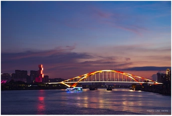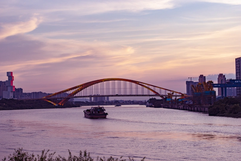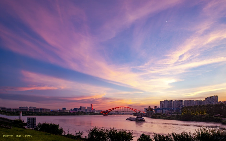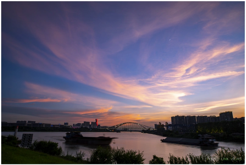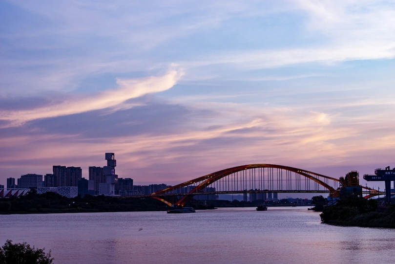 连日来的酷热天气,佛山东平河河畔呈现出如轻纱般通透的夕阳,沉醉的夕阳,绚丽的色彩,构成一幅幅美丽的画卷。
