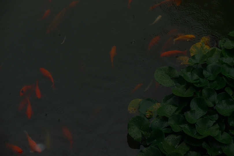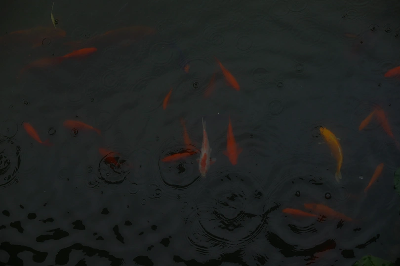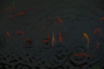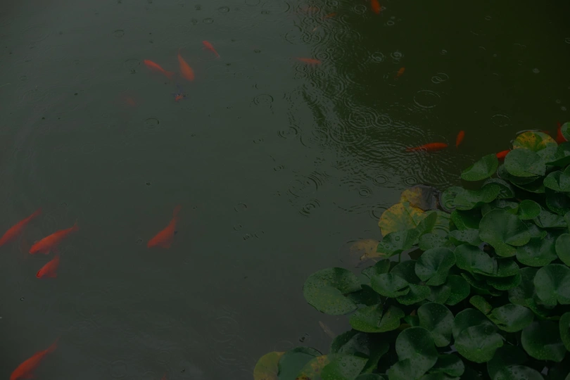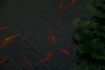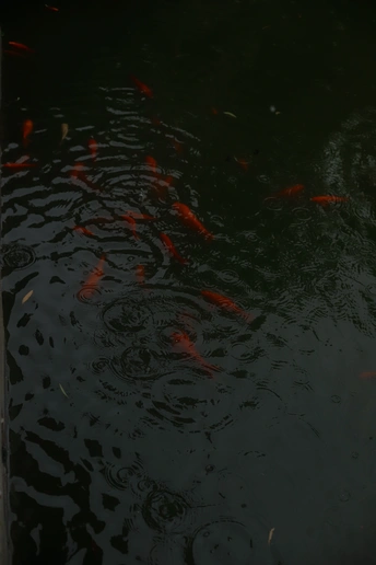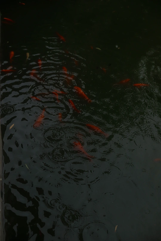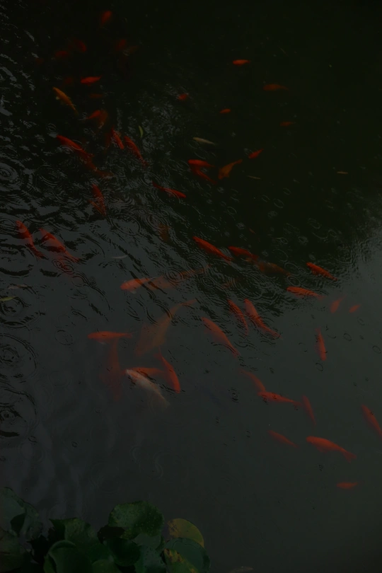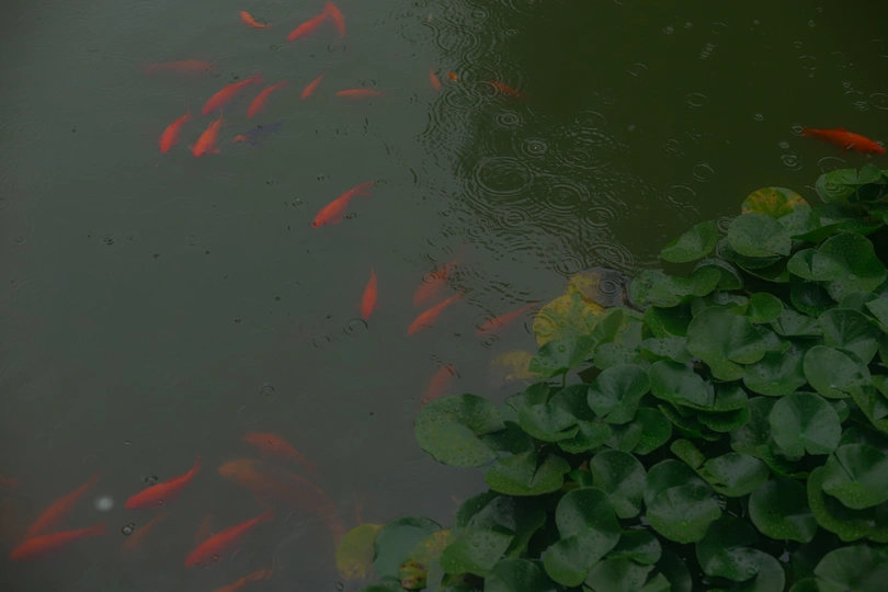 潍坊十笏园的下雨天 ,下雨天的鱼儿,鱼儿没有人们打扰好像游得更加自在了