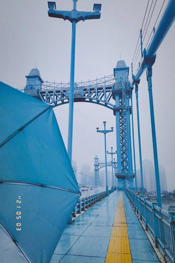 51的时候在武汉玩的时候去古田桥随手拍的几张 当时雾蒙蒙的雨天配上蓝色的古田桥真的美爆了!当时雨下得很大,所以买了一把伞,恰好和桥的颜色契合到了一起,真的不虚此行!真是爱了这座城市!