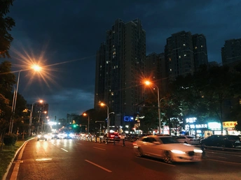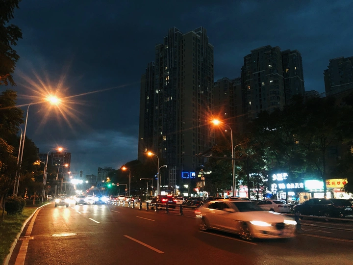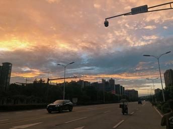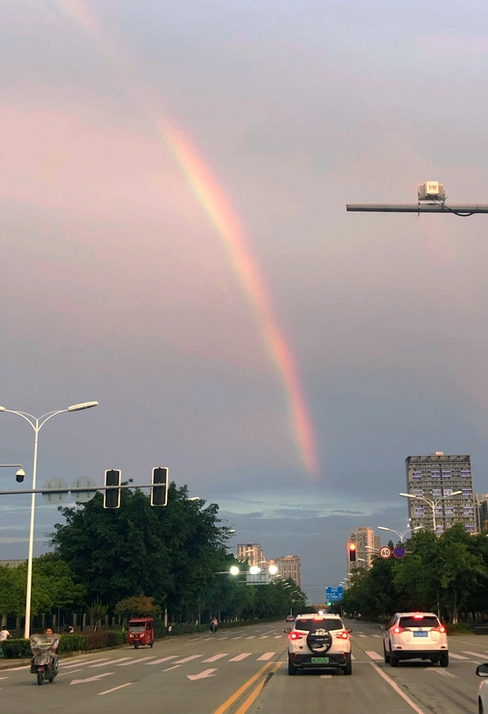 今天走着走着,遇见了彩虹.晚霞和夜晚喑蓝灰色的天空。今晚是温江入夏以来最美的傍晚了。[愉快]
